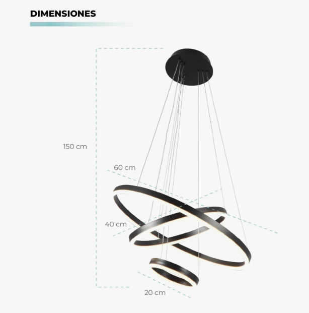 Ilumina tus espacios con estilo gracias al Candelabro Colgante LED Atikus de 125W, una pieza moderna con 3 arcos de cobre en acabado negro mate que combina elegancia y sofisticación. Su diseño contemporáneo crea un ambiente cálido y acogedor, ideal para realzar salas, comedores, dormitorios, escaleras o cualquier rincón donde busques un toque de distinción.
