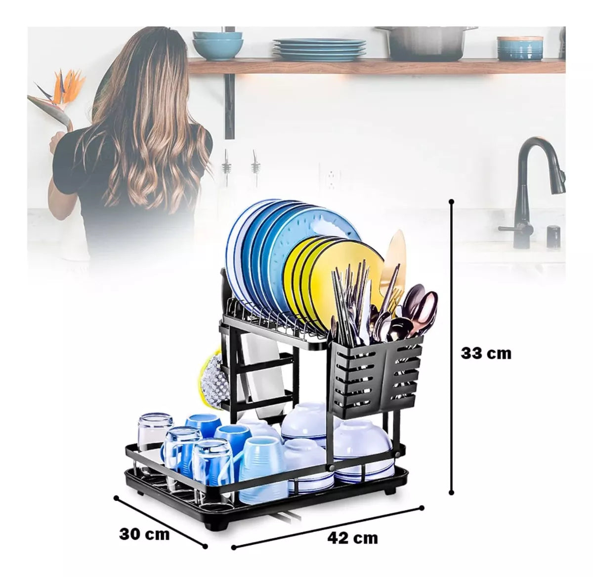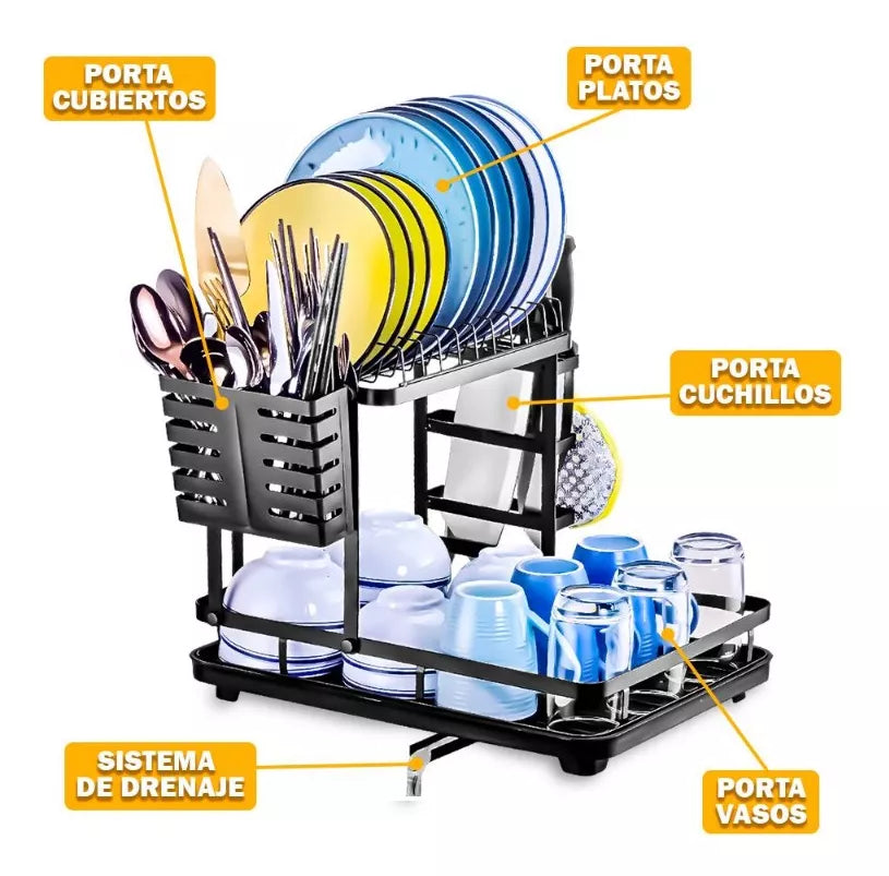 CARACTERISTICAS: Diseño de 2 pisos, base ajustable, fácil de instalar, porta cubiertos, abertura para sacar el agua, con bandeja.